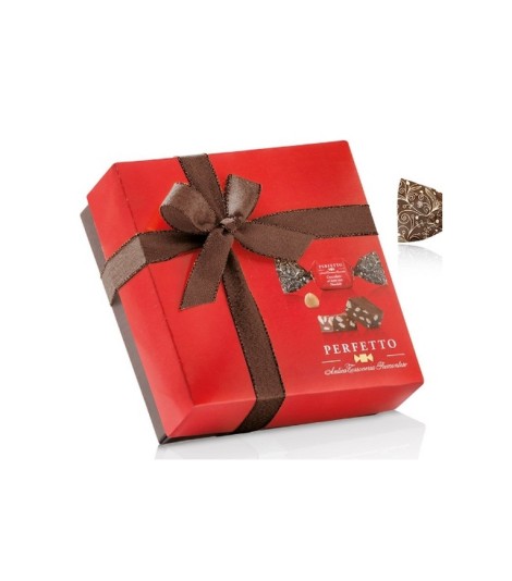 Elegante cofanetti che custodisce il nostro Perfetto al latte. Nocciole tostate da noi come vuole la tradizione e cacao rigorosamente selezionato...