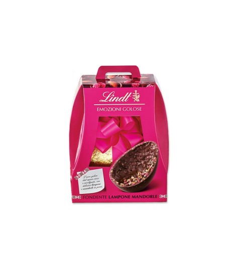 Un uovo di finissimo cioccolato fondente con granella di nocciole Piemonte I.G.P., all'interno una iconica sorpresa: tre golose praline Piemonte...