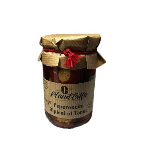Nuovo Non disponibile Occhiata veloce Acquista PEPERONCINI RIPIENI AL TONNO 280GR Prezzo 7,00 € INGREDIENTI: peperoncini piccanti 48%, olio extra vergine di oliva, tonno 16%, carciofi, olive verdi, pane grattuggiato, aceto, origano, pepe nero... Prezzo 7,00 € Acquista
