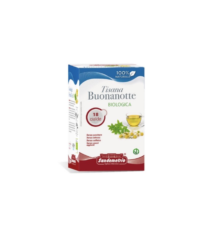 La tisana funzionale Buonanotte San Demetrio è una miscela costituita da erbe officinali quali Passiflora, Camomilla, Arancio, Biancospino, Verbena odorosa, Menta piperita, Mora, Lavanda e Valeriana. Se presa regolarmente può essere utile per favorire un sonno tranquillo e riposante