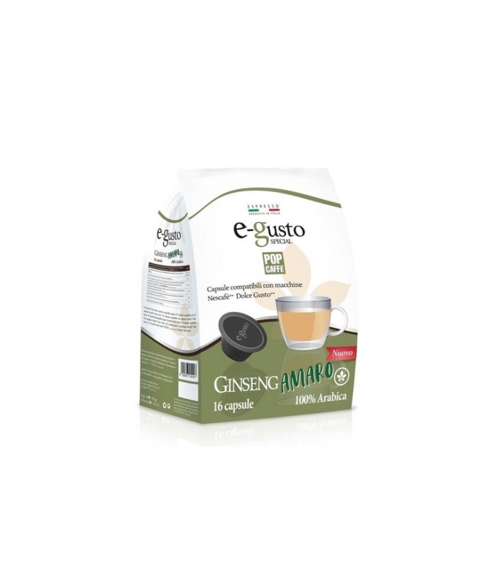 Pop Caffè Ginseng AMARO capsule compatibili con le Macchine da Caffè a marchio Nescafé® Dolce Gusto®*. Preparato solubile per bevanda al gusto di Caffè e Ginseng in capsule.