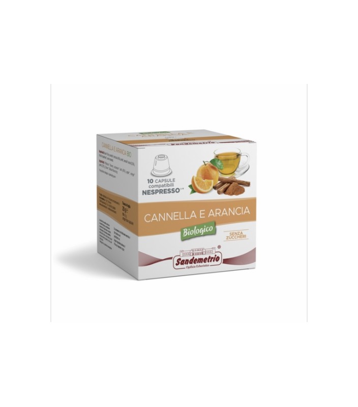 10 Capsule San Demetrio Infuso Cannella e Arancia BIO compatibili Nespresso®* COMPOSTABILI: una bevanda a base di pregiate erbe, arricchita dall’aroma avvolgente della cannella