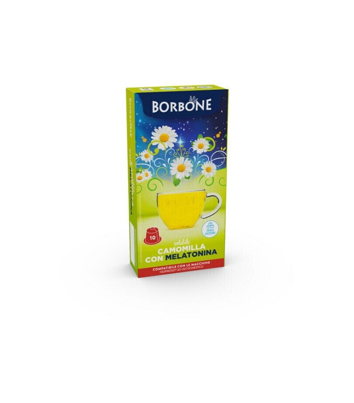 Capsule di CAMOMILLA & MELATONINA Borbone, compatibili con Macchine Nespresso, perfette per chi non può proprio fare a meno dell'aroma della camomilla.