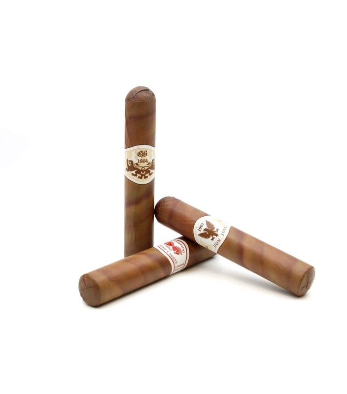 Sigari di Cioccolato figura cava di cioccolato al latte cacao 30%, rivestite in alluminio con disegni di sigari.