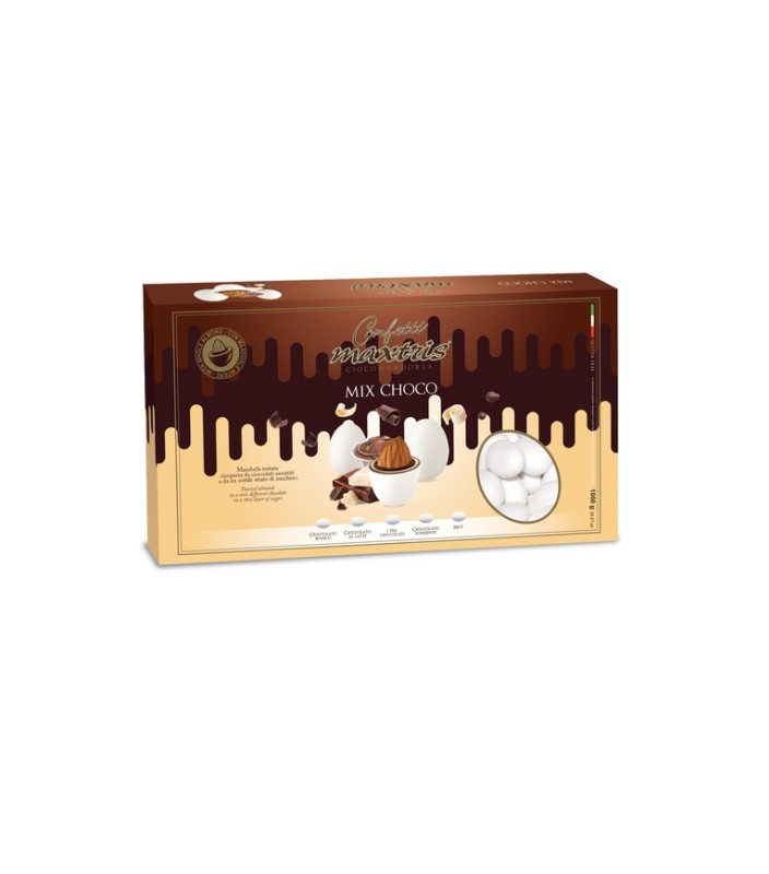 Mandorla tostata ricoperta da cioccolati assortiti e da un sottile strato di zucchero.