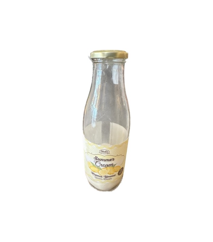Confezionato in una caratteristica bottiglia in vetro da 750 ml – che ricorda molto il modello utilizzato in passato per la distribuzione del latte (e non come semplice “preparato in busta” da mescolare) – contiene 130 grammi di preparato in polvere e viene proposto in cinque gusti: Crema caffè, Crema Cioccolato, Limone, Fragola, Cocco e Melone Cantalupo.