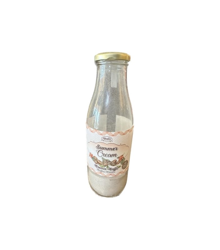 Confezionato in una caratteristica bottiglia in vetro da 750 ml – che ricorda molto il modello utilizzato in passato per la distribuzione del latte (e non come semplice “preparato in busta” da mescolare) – contiene 130 grammi di preparato in polvere e viene proposto in cinque gusti: Crema caffè, Crema Cioccolato, Limone, Fragola, Cocco e Melone Cantalupo.