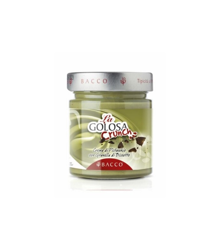 La nuova versione della crema al pistacchio Bacco è adatta a tutte le occasioni. Dalla colazione alla merenda, dalle feste di compleanno alle celebrazioni più svariate, la crema Crunch saprà stupirti lasciando esplodere in bocca la croccantezza del biscotto unita alla cremosità della pasta di pistacchio