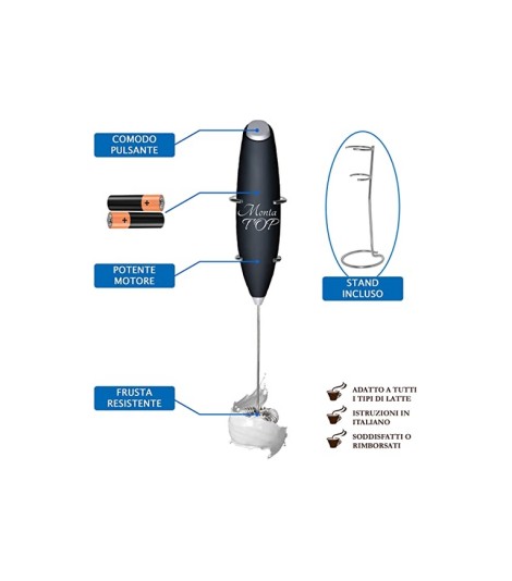 ? MENTRE GLI ALTRI SCHIUMA LATTE NON riescono a creare la schiuma, fanno schizzare il latte ovunque o si rompono dopo qualche giorno, il montalatte per cappuccino MontaTOP si differenzia per la CREMOSITÀ della schiuma, per la sua velocità TESTATA (pari a 200 giri al secondo) e per la GARANZIA a VITA. Questo significa che, grazie al MontaTOP, potrai avere un dolce cappuccino per te e per la tua famiglia e iniziare così la giornata con il piede giusto!