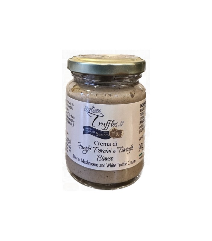 INGREDIENTI: Funghi porcini 66%, olio d'oliva 27.5%, tartufo bianco 5%, sale, aromi.