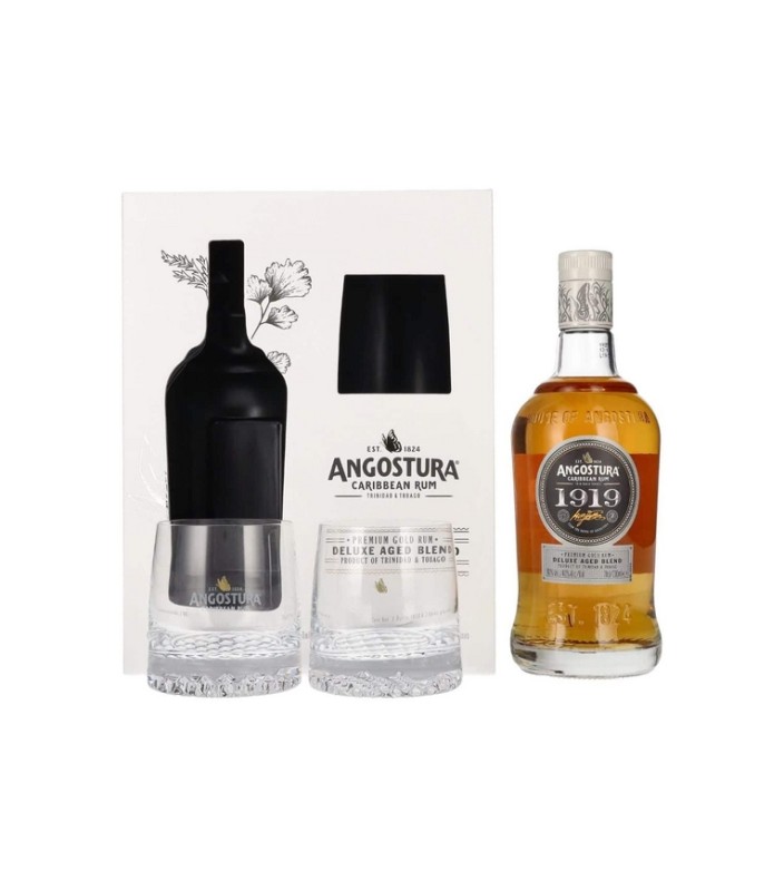 Angostura 1919 è un blend di rum leggeri e pesanti, invecchiato per un minimo di 12 anni in botti di bourbon. Questa insolita composizione ambrata e dorata, limpida, cattura ciò che è unico in questo rum, un aroma straordinario pieno di melassa, caramello, vaniglia e cacao. Il finale morbido e lungo ti ispira ad assaggiare il sorso successivo. Oltre al suo gusto e aroma insoliti, l'Angostura 1919 porta con sé una storia interessante. Il 1919 è un riferimento a una data importante nella storia dell'azienda. L'origine del nome si riferisce all'incendio che distrusse una parte significativa della distilleria, e dopo il quale furono risparmiate solo le botti contrassegnate con il 1919.