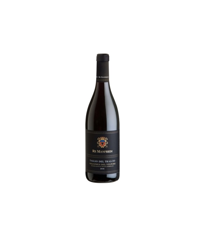 L'Aglianico del Vulture “taglio del tralcio” è un rosso che nasce dalla ricerca di un Aglianico in una versione più morbida. La particolare tecnica di appassimento in pianta, il taglio manuale di parte del tralcio, portano alla concentrazione dei sentori di frutta e all'ammorbidimento dei tannini. Dopo una maturazione di circa 6 mesi in barrique di rovere francese ci ammalia con il suo rosso rubino. Esprime intensi profumi balsamici di eucalipto fusi a quelli di ciliegia in confettura, amarena, petali di rosa appassiti, grafite, pepe rosso, cacao. Setoso, avvolgente e rotondo, fa trasparire piacevole sapidità, armonia e lunga persistenza.